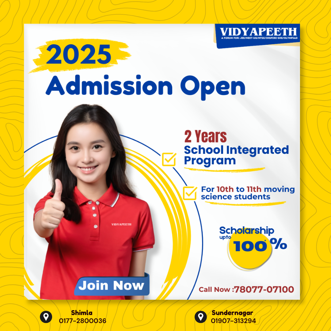 Don’t miss this golden opportunity to secure your future with Vidyapeeth Shimla’s proven guidance and integrated coaching for NEET/JEE.
